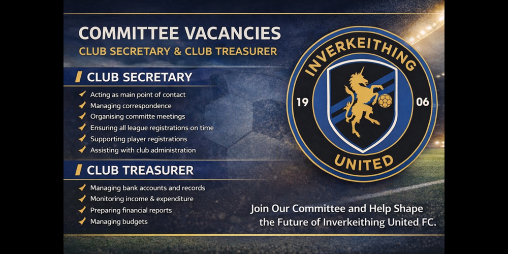 These are important roles within the club and offer a fantastic opportunity to contribute to the continued success and development of football in Inverkeithing.